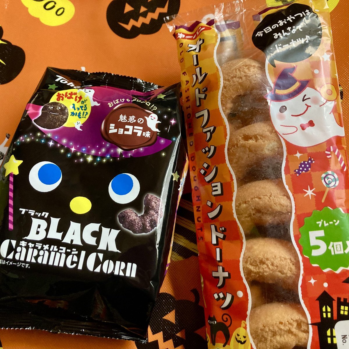 つい🎃カボチャを食べる日と勘違いしがちだけど… #Halloween 👻華やかではあるのでお安めのお菓子でハロウィン気分⤴️🤗 #キャラメルコーン #Donuts 🍩 pic.x.com/pvTM5grrka