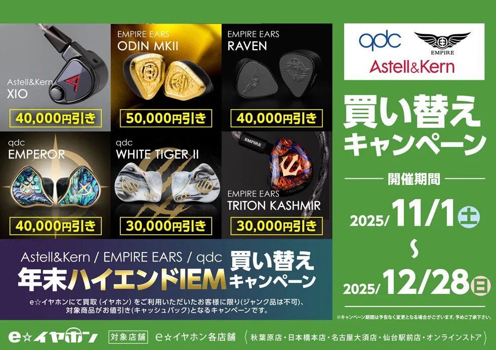 #eイヤ仙台駅前店 #AstellnKern #EMPIREEARS #qdc 本日の営業は終了しました🌃🌙 🗓️ 12/28(日)まで! Astell&Kern / EMPIRE EARS / qdc ✨年末ハイエンドIEM✨ 買い替えキャンペーン実施中🪽 pic.x.com/n4bPsn19mC