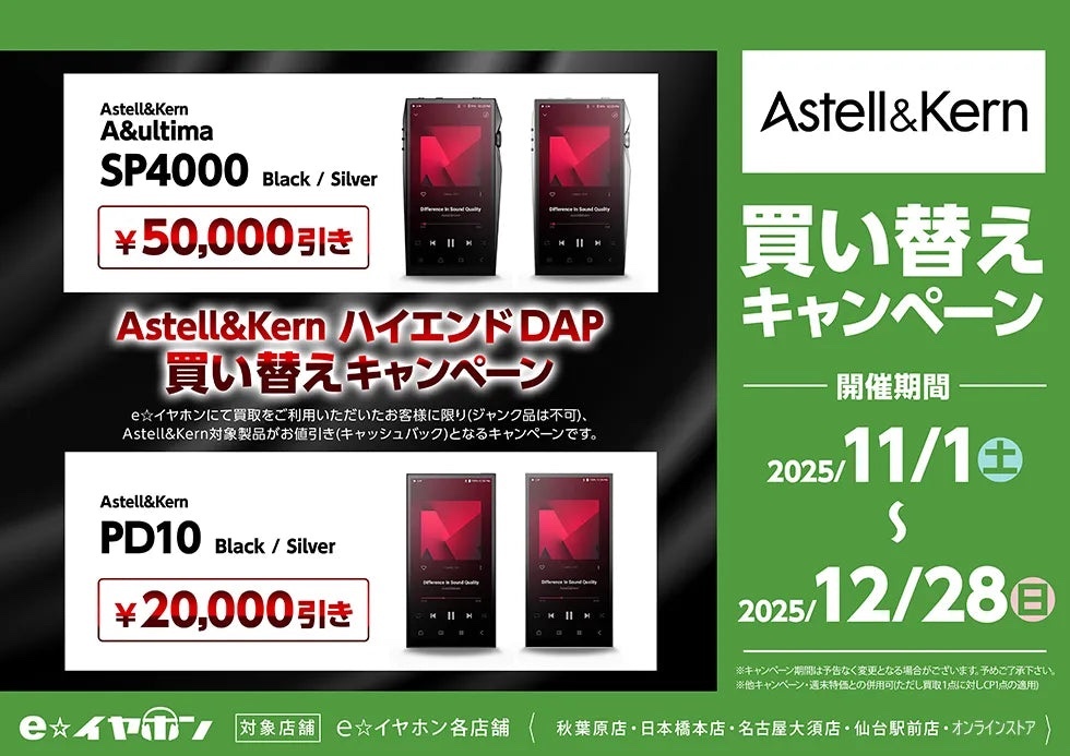 #eイヤ仙台駅前店 #DAP #AstellKern おはようございます☀️ 本日も元気にオープンしました🎧 【Astell&Kern 買い替えキャンペーン】が2025/12/28(日)まで開催中です。e☆イヤホンにて買取をご利用いただいたお客様に限り「A&ultima SP4000」等の対象製品がお値引きとなります☺️ pic.x.com/LDtgVP9NZy