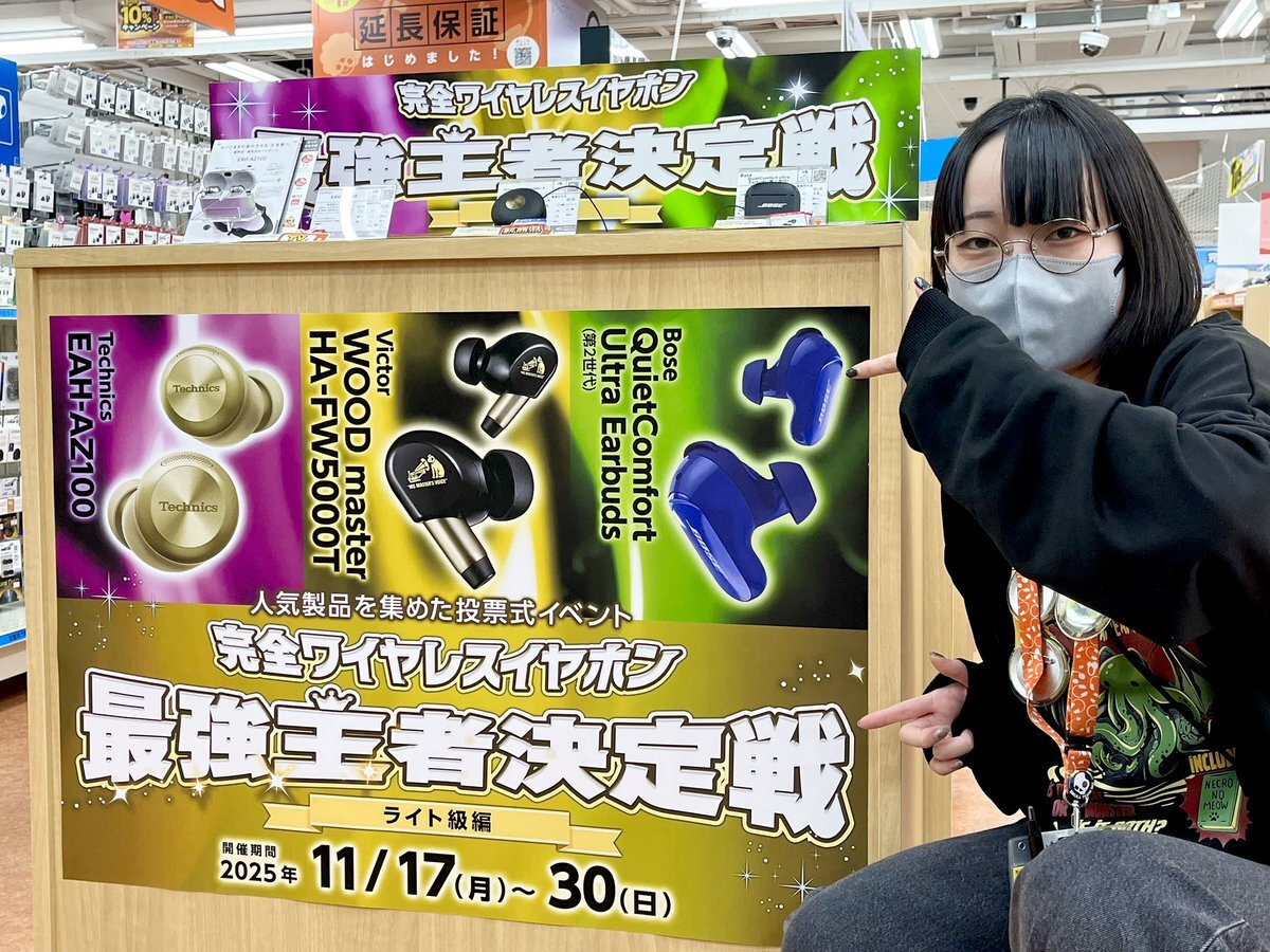 #eイヤ仙台駅前店 #ワイヤレスイヤホン おはようございます☀️ 本日も元気にオープンしました🎧 【人気製品を集めた投票式イベント】 完全ワイヤレスイヤホン 👑最強王者決定戦👑 〜ライト級編〜 本日より投票スタートです🔥 投票期間は11/30(日)まで✅ イチオシ製品にぜひ投票をお願いします💁🏻‍♀️ pic.x.com/4PwQZODmJp