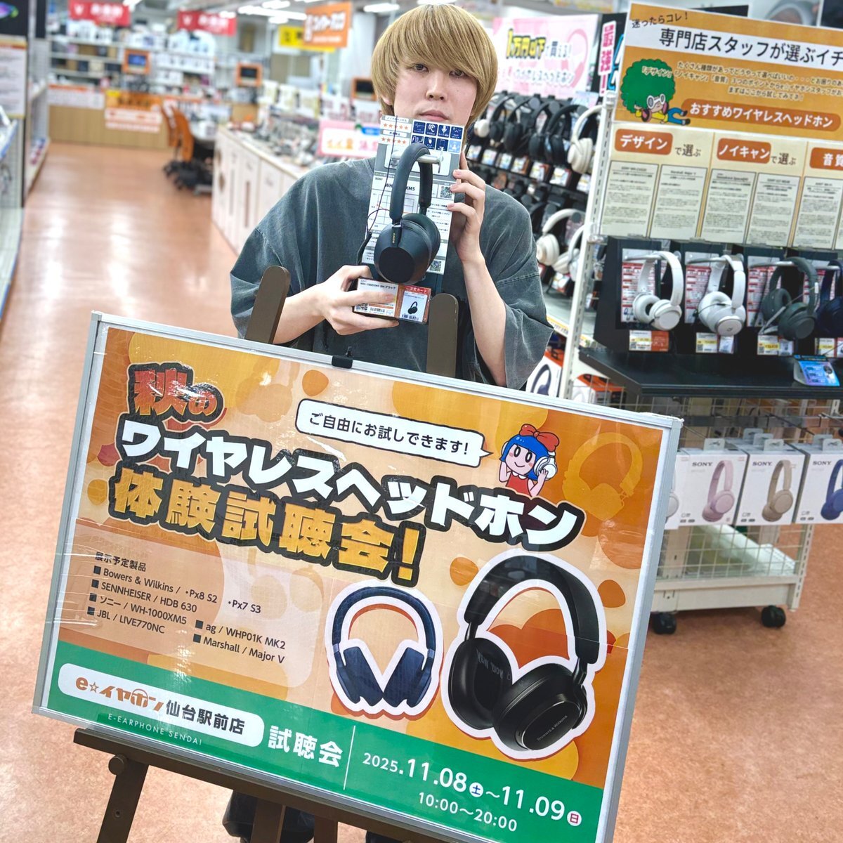 #eイヤ仙台駅前店 #イベント #ワイヤレスヘッドホン おはようございます☀️ 本日も元気にオープンしました🎧 🍁秋のワイヤレスヘッドホン体験試聴会!🎧 オススメヘッドホンを集めました☺️ 新しいヘッドホンに悩まれている方、ぜひお気軽にお試しください🤲 pic.x.com/2HCD2ngKLQ