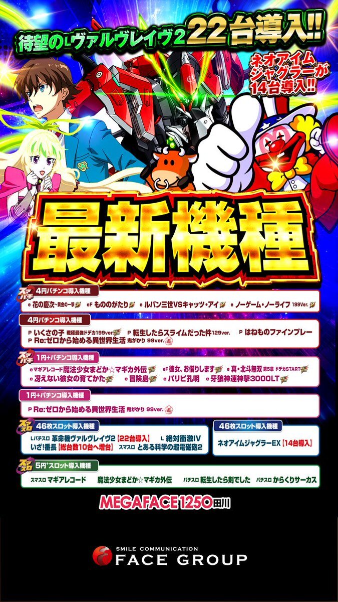 おはよー😆 1⃣1⃣月7⃣日 🔟時OPEN!! #新台入替 #L革命機ヴァルヴレイヴ2  2⃣2⃣台 #ネオアイムジャグラー   1⃣4⃣台 #eフィーバーもののがたり  1⃣1⃣台 その他多数導入してるよ🥰 話題の新台を打つなら #フェイス田川へ LINE抽選受付は9⃣時からだよ🥰 朝から待ってるよ~😍 pic.x.com/qtjzg9bDu9