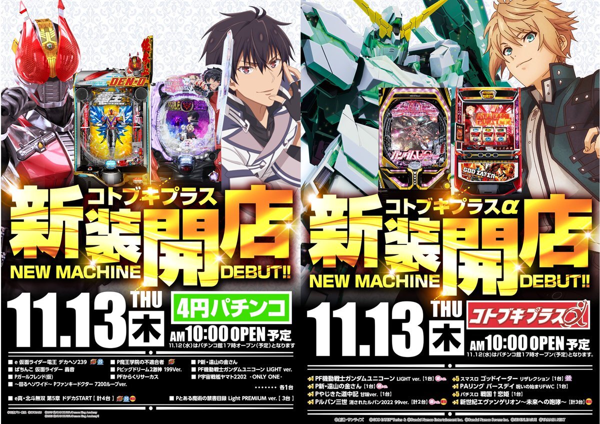 こんばんは🌛 明日1⃣2⃣月4⃣日(木) 全館元気に🔟時OPENです⏰ 🌈スロット館 最新台🎉 ▶ #Lからくりサーカス#Sワードオブライツ2#L南国育ち#S新鬼武者2 🌈パチンコ館(+5含む)最新台🎉 ▶ #e仮面ライダー電王#e真北斗無双5#Pとある魔術の禁書目録Light#S戦国恋姫pic.x.com/QnMMoIdRN0