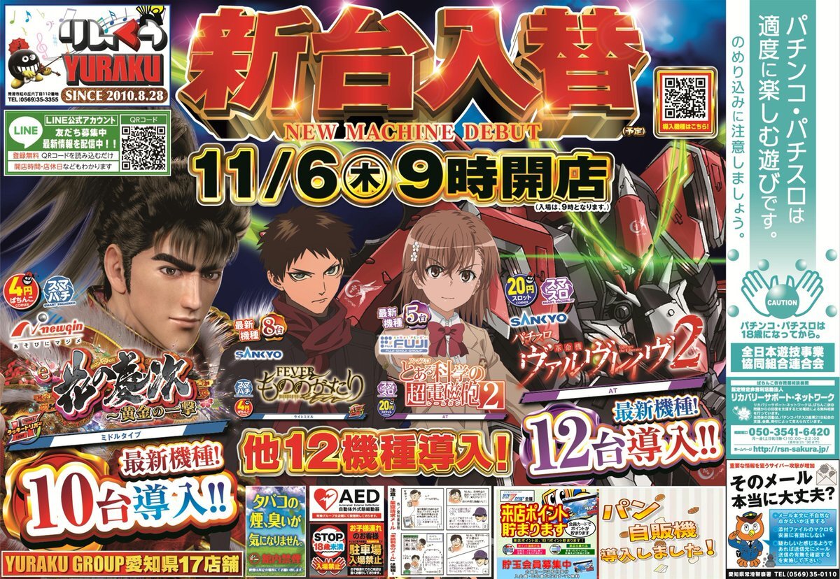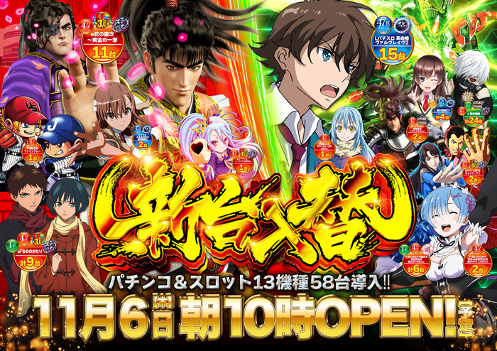 こんばんは 大量の新台設置完了👍 明日11月6日(木) #e花の慶次〜黄金の一撃 #Lパチスロ革命機ヴァルヴレイヴ2 上記2機種を含む新台13機種58台導入👊 #とてすごクエスト来店取材 🌈スーパーキングギドラ 🔥キングギドラ 😍紗波さん実践来店 @sana___373 入場抽選時間は 9時39分開始! pic.x.com/43Ga7eJKIQ