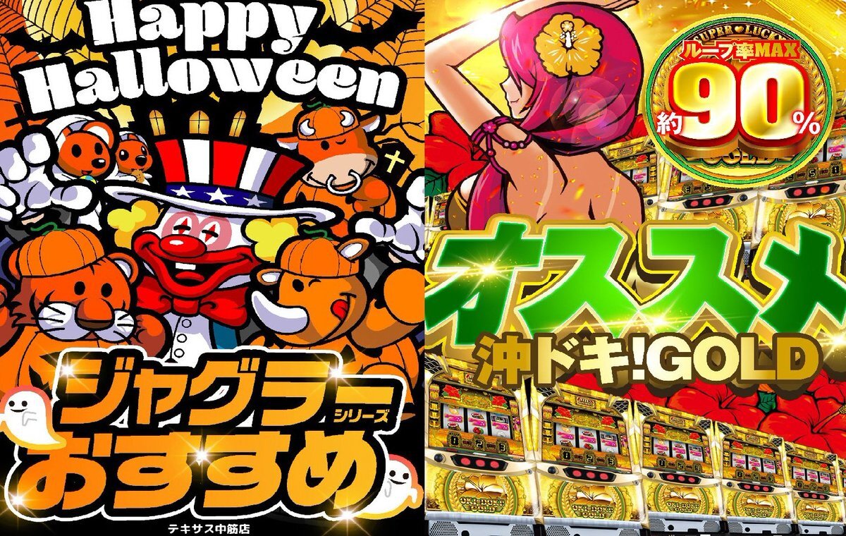 こんばんは🌙 #テキサス中筋店 です! 明日10月24日(金) 🏃連日9時開店🏃 ✨ガコっとドキっと💕 🌺#沖ドキGOLD #ジャグラー🤡 👆オススメ👆 🌈新☆台☆稼☆働☆開☆始🌈 #Lコトブキ飛行隊 #L新鬼武者 #P沖海6 #e超電磁砲 #eダンバイン etc. ご来店お待ちしております😎 pic.x.com/LMbVV75nG2