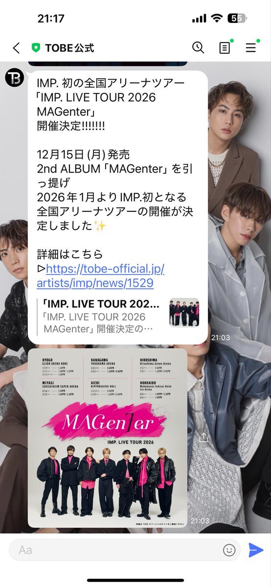 【トピクル】 🎶IMP.🎶 来年1月から初アリーナツアー開催!「全国を僕らの色に染めたい」 気になる内容は画像をタップ✔️ #推しが見つかるトピクル topicool.jp/article/tobe/i…