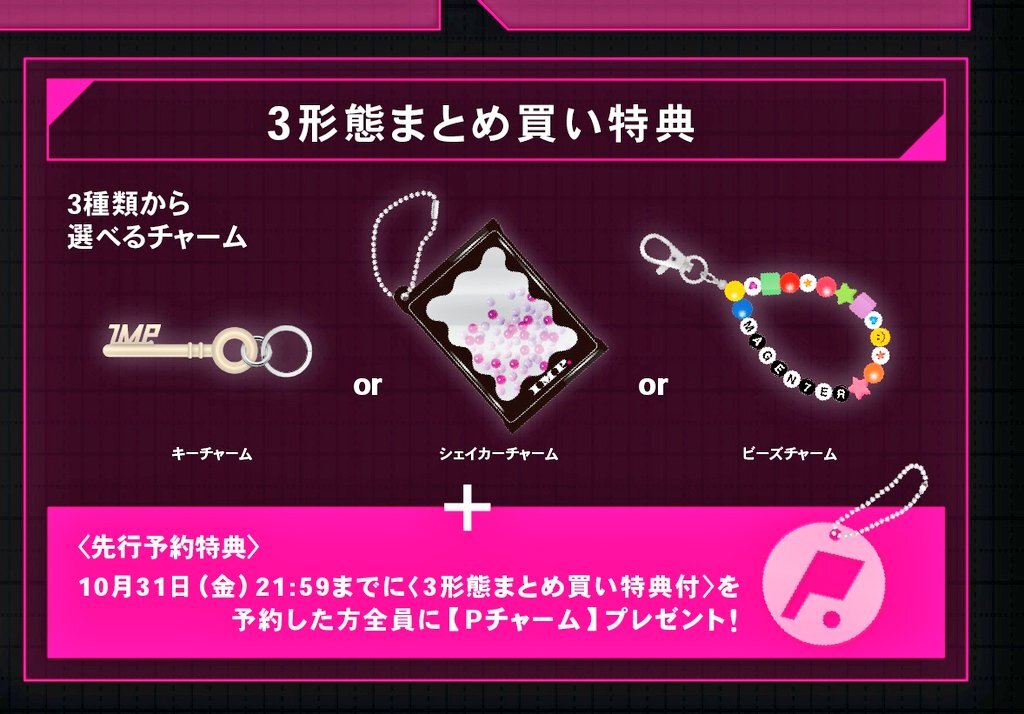 / #IMP. 2nd ALBUM「MAGenter」 12月15日(月)発売決定!!!!!!! \ ◤3形態まとめ買い特典◢ 3種類から選べるチャーム 10月31日(金)21:59までに 《3 形態まとめ買い特典付》をご予約いただくと 先行予約特典【Pチャーム】をプレゼント🎁 ご予約はこちら💿 ▷tobe-store.jp/pages/magenter #MAGenter_IMP.