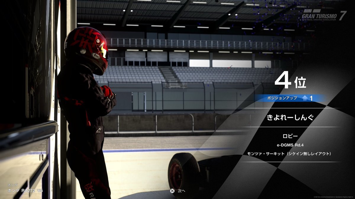 #edgms 4位でした。 予選の位置どりミスでタイムが出ず 予選良ければハヤシライスといい勝負できたんじゃないかぐらいのペースはあったので結構悔しいです レース直前から突然の腹痛に襲われたので迷惑をかけてしまったらすみません。 #GT7 pic.x.com/RMrOTvbvL1