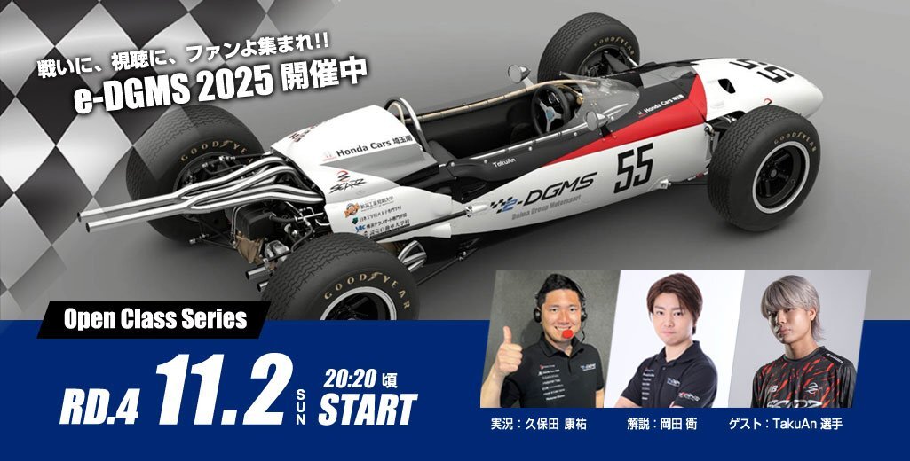 e-DGMS 2025 by グランツーリスモ Open Class Series Round.4【2025年11月2日】 #グランツーリスモ7 のオンライン大会。 国内在住の中学生以上を対象とした「Open Class Series」 ROUND4は11/2(日)20:20~ 配信 #edgms esports-world.jp/tournament/548…