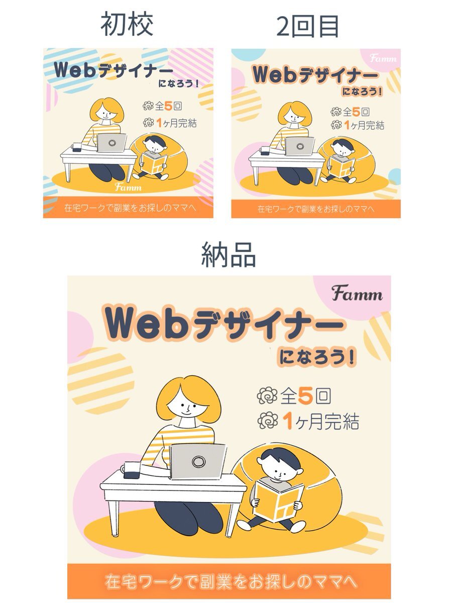 famm案件修正後に再提出してOK貰えました! 自分で納期を決めて、修正がある前提で逆算して納品。修正後も不安だらけだったけど、OKを貰うことができて嬉しい😊 今月中に次の案件とりにいきます!! #fammスクール #famm卒業生