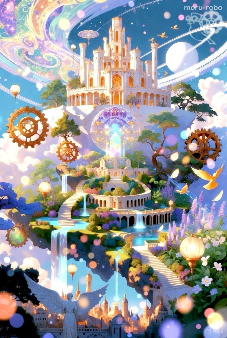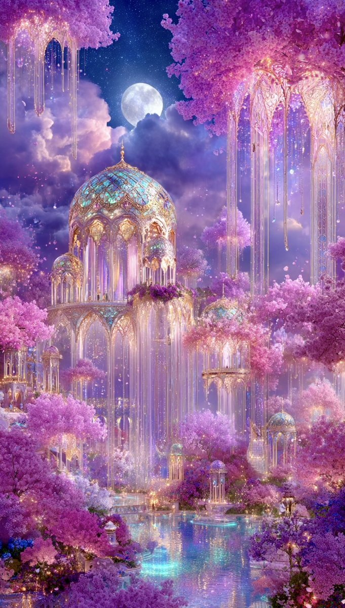 月あかりにそっと浮かぶ プリズムの宮殿。 きょうも一日おつかれさま🌙✨ A prism palace glowing under the moonlight. Wishing you a calm and magical night ✨ #aiart #fantasy #dreamscape pic.x.com/dcuHhb7flE