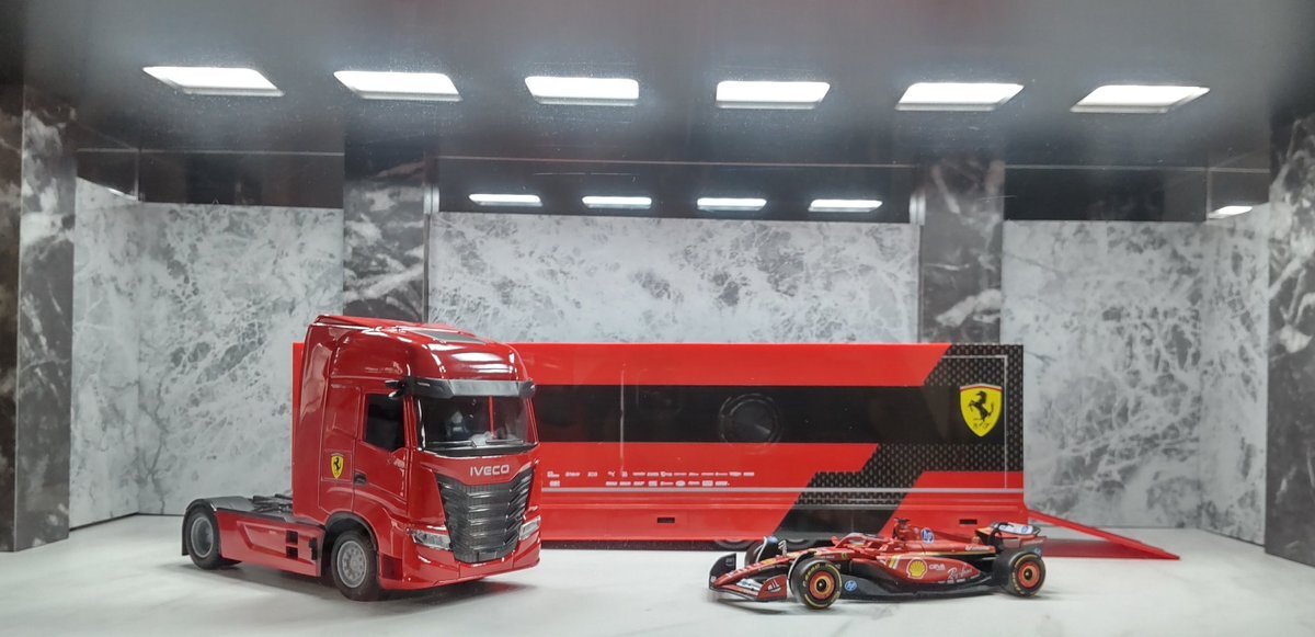 Bburago 1/43 イベコ S-Way 570 キャブ &トレーラー/フェラーリ SF-24 No.16 C.ルクレール 完成品 (アリエクで購入) カッコいい😆けどドアウィンドウのガラス部分が無いので追加とホイール塗装をしたいと思います🤔 #ミニカー #Ferrari #F1 pic.x.com/Me15yk9vyt