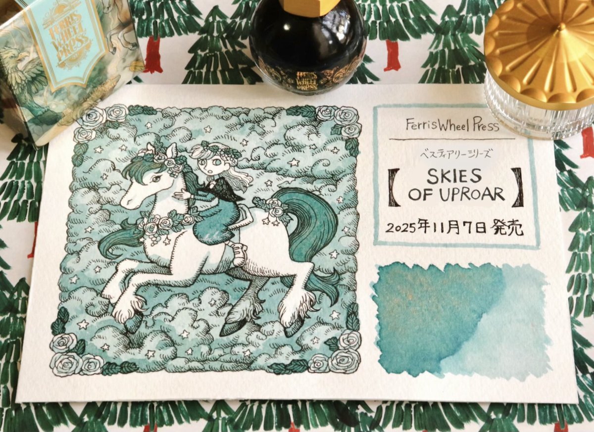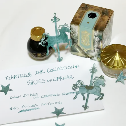2025年11月7日(金)発売の新色! フェリテール コレクション 「スカイズ オブ アップロアー」 美しい水色のインクとシャンパンシマーのラメが幻想的なインクです✨ @FWPStationery @FWPStationeryJP #ferriswheelpress #フェリスホイールプレス #ferritales #フェリテール pic.x.com/wRLbVUftwY