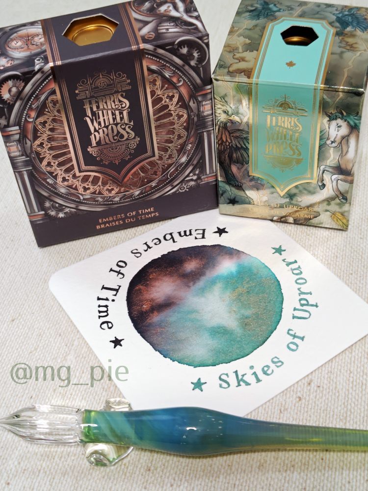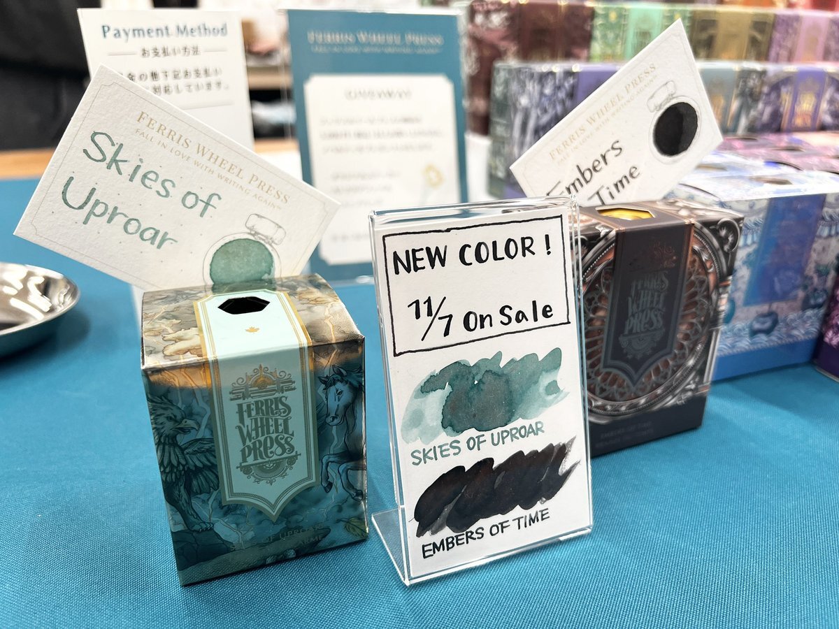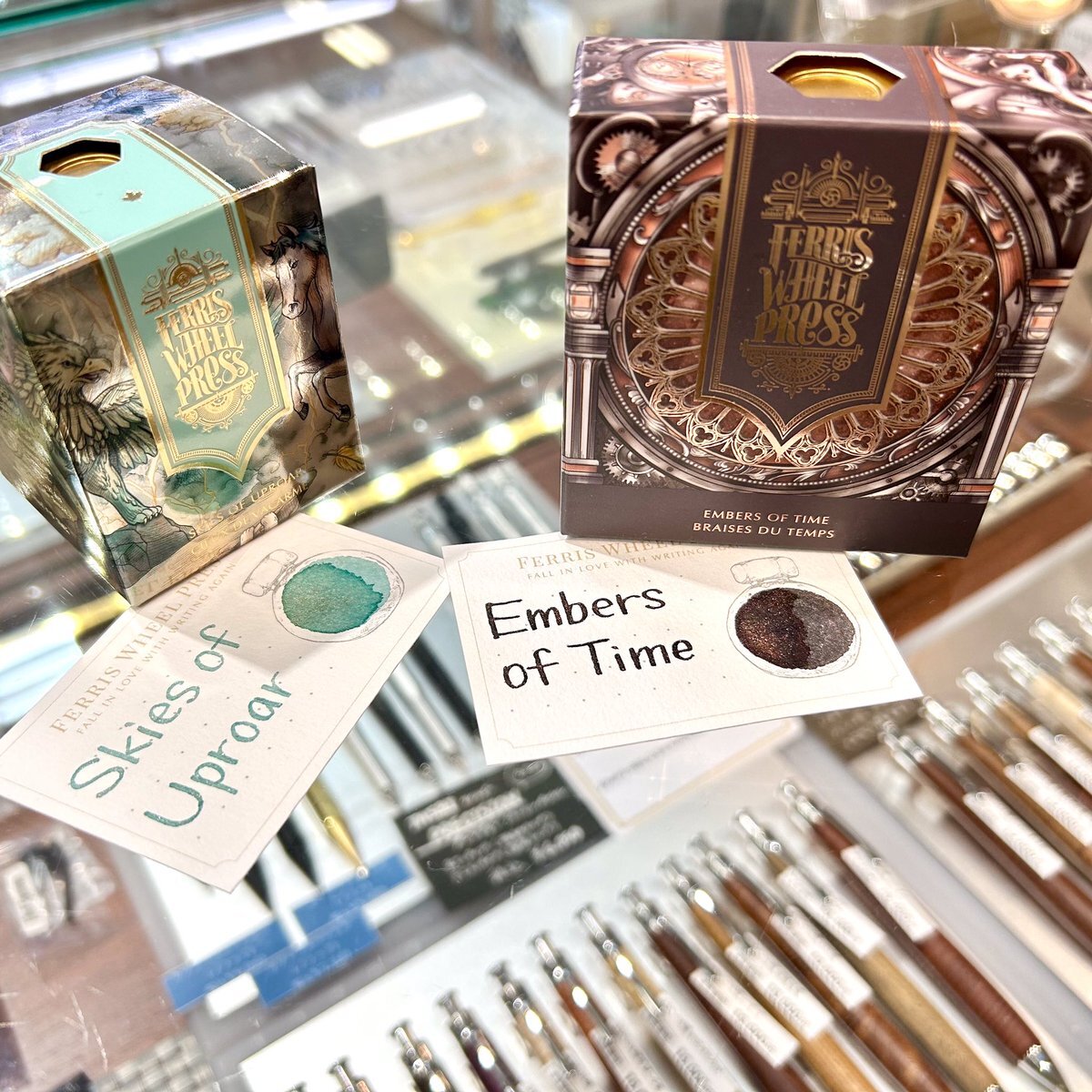 【新入荷🖋】#FerrisWheelPress より新色2色入荷しました✨ ⚡️#スカイズオブアップロアー:天空を裂く稲妻のスカイブルー×シャンパンシマー ⚙️#エンバーズオブタイム:機械の鼓動を思わせるダークグレー×ローズゴールドシマー どちらも物語を紡ぐような魅惑のインクです📖✨ pic.x.com/XALyyEgIzA