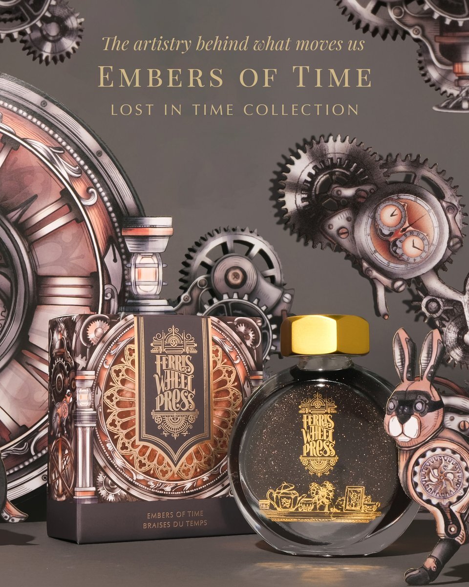 【エンバーズ オブ タイム】 11/7発売✨ スチームパンクを感じるこちらのインク⚙️ 描き始めはグレーを感じ、乾いていくにつれてローズゴールドシマーが表れ、まるで金属が錆びていくような感覚をインクで味わう事が出来ます🙌 #ferriswheelpress #フェリスホイールプレス pic.x.com/31D02BAJ8v