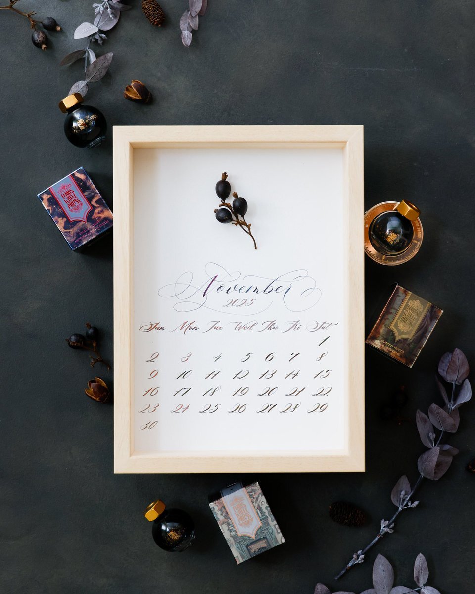カリグラフィー・フローリッシュ 11月カレンダー ✒︎INK FERRIS WHEEL PRESS FERRITALES Collection ▶︎Starlit Stories ▶︎Adventurine ▶︎Curious Woods 見る角度によって見え方が変わる💖魅惑のお色🥰 #ferriswheelpress #フェリスホイールプレス pic.x.com/bDG7mgDwwY