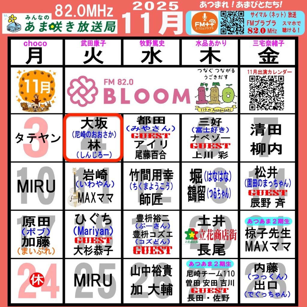11月14日(金)12時〜の #あつまれあまびとたち 担当は園田のまっちゃんです!ゲストはホンダカーズ尼崎東・尼崎自動車整備振興会尼崎支部長 辰野斉さんです✨メッセージお待ちしてます! #FMBLOOM #みんなのあま咲き放送局 #あつあま #尼崎市 #ラジオ pic.x.com/rNmFeaa2Si
