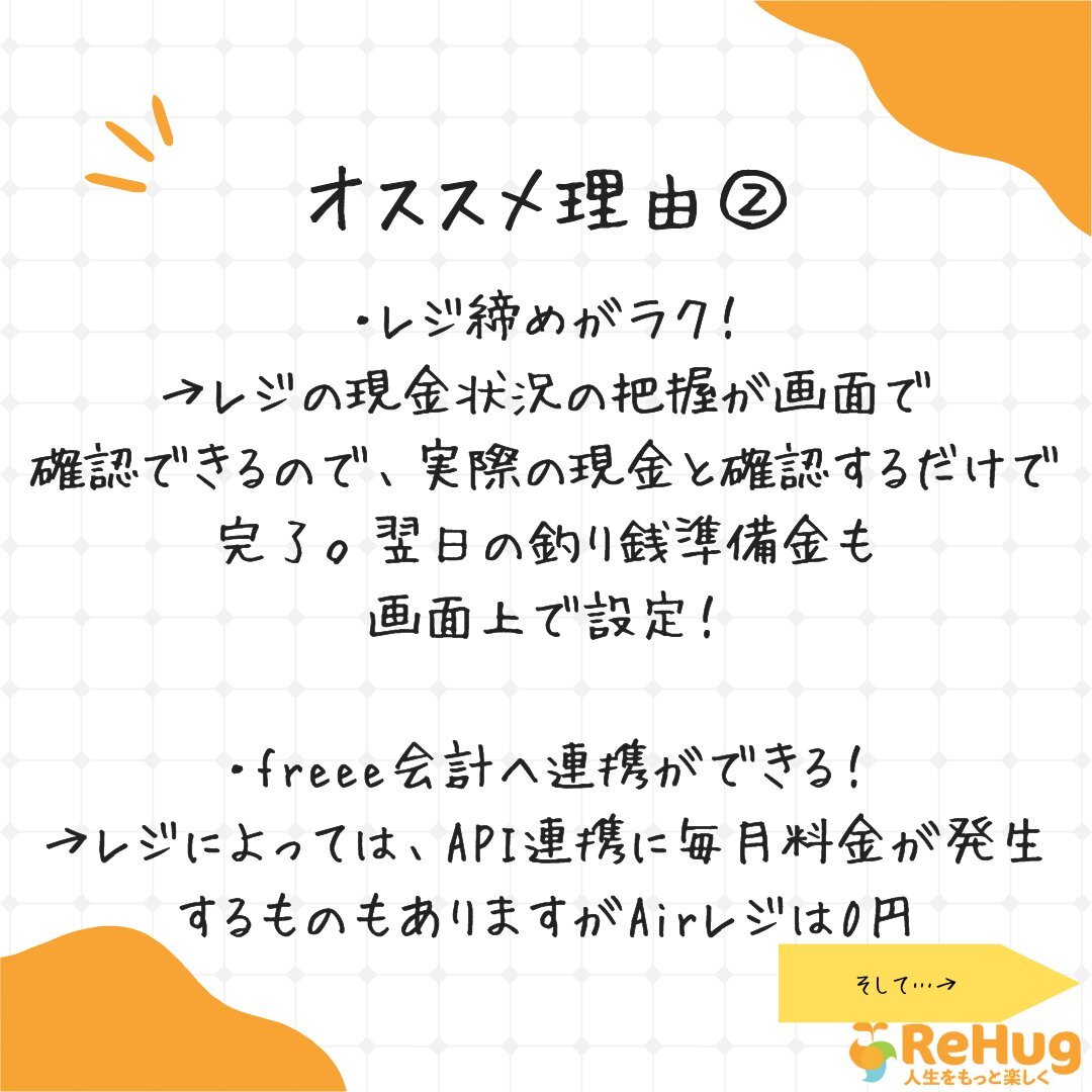 【飲食店向け】クラウドレジやPOSレジ導入検討の方は、エアレジから導入すると、freeeの連携はもちろん、0円でお試ししやすいかもしれません!(後編) ReHug詳細は、rehug.co.jpから #9月決算 #freee会計 #税理士 #経理 #飲食 #沖縄 #熊本 pic.x.com/KjBxQz2iqh