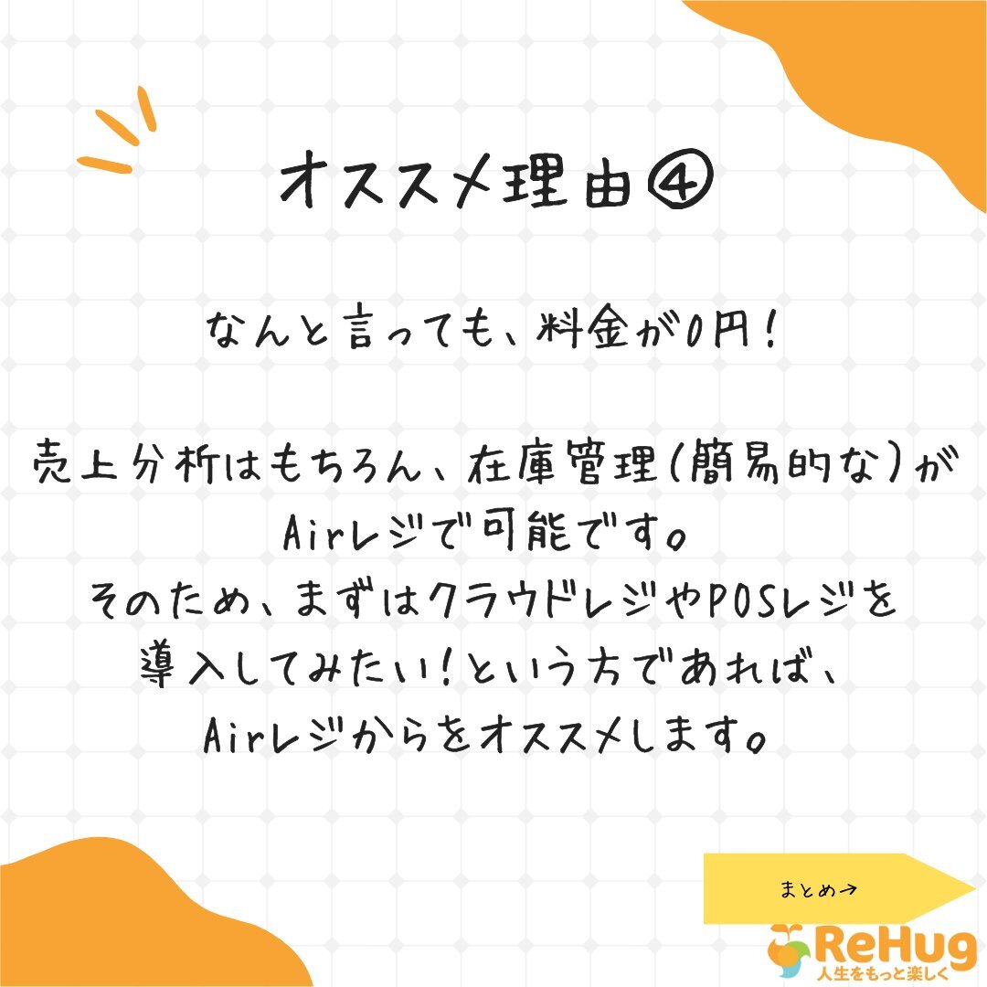 【飲食店向け】クラウドレジやPOSレジ導入検討の方は、エアレジから導入すると、freeeの連携はもちろん、0円でお試ししやすいかもしれません!(前編) ReHug詳細は、rehug.co.jpから #9月決算 #freee会計 #税理士 #経理 #飲食 #沖縄 #熊本 pic.x.com/CYDOFVNkF2