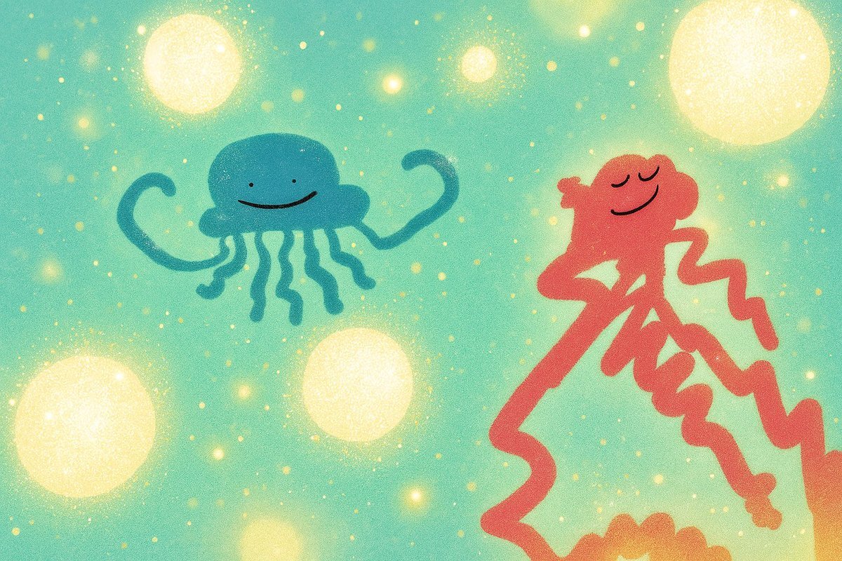 iPadを購入し、frescoでお絵描きも始めてみた。 子どもと私で描いたくらげの絵。 AIに加工してもらったら、なかなか素敵な作品になりました😊✨ #AdobeFresco #adobe #fresco #おえかき #イラスト #Webデザイン勉強中 pic.x.com/oBcNEGrXgj