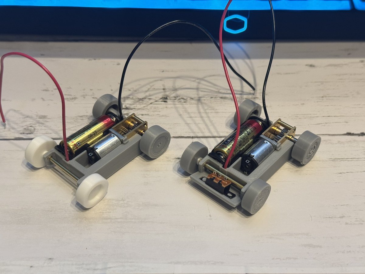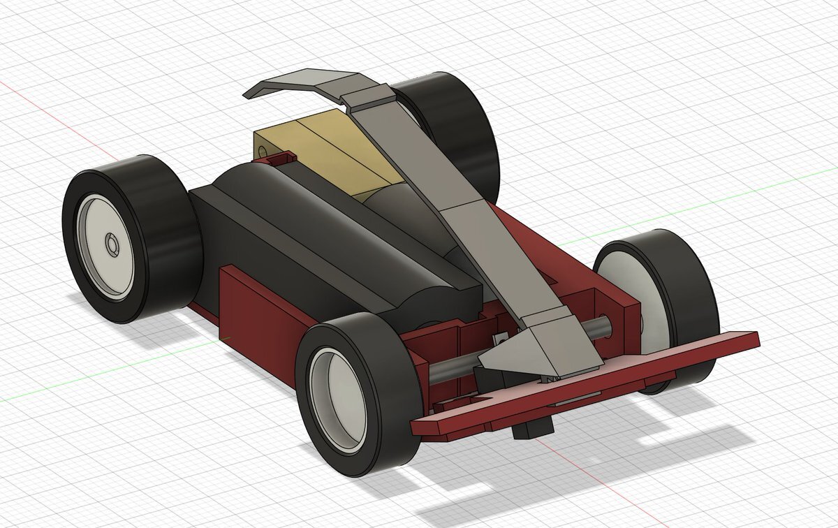 今日の進捗。 ボルト式前輪にトライしているとき、ここスペース空いたじゃん!と思ってスイッチを前方に移動。 実験の結果ボルト式じゃグラグラしてダメだと解かり、シャフトに戻すもスイッチと干渉するシャシーが出来てしもうた💦 #fusion360 #3Dプリンター #ミニ四駆 #トミカサイズ自作ミニ四駆 pic.x.com/RplGEorBBB