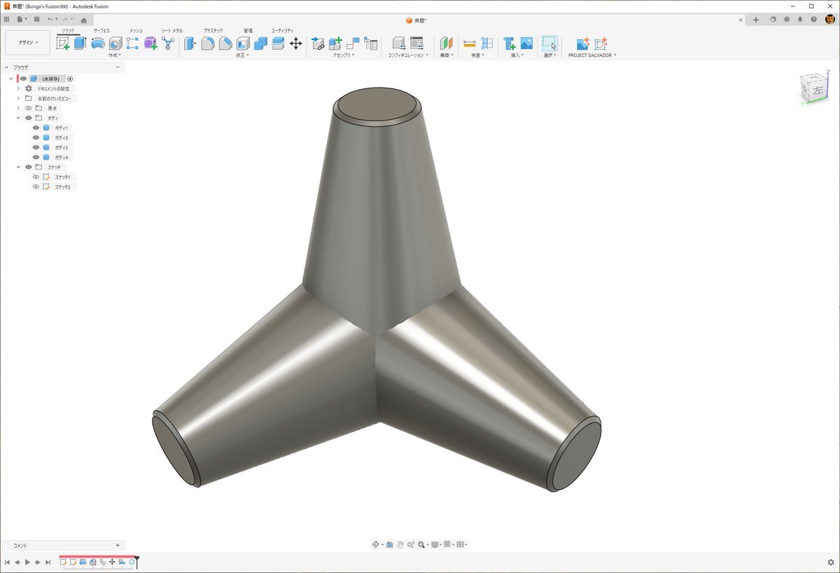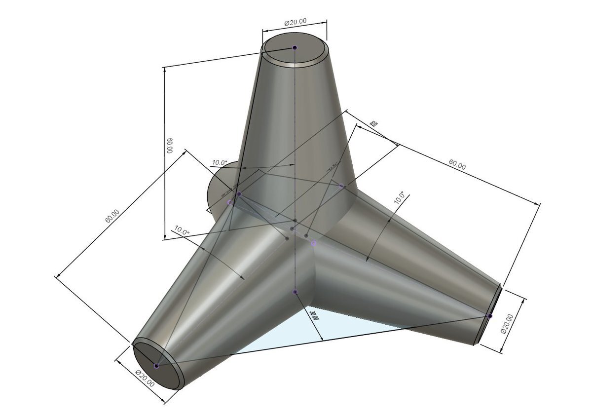 テトラポットねぇ……。 パラメトリックCADならば、計算一切しなくても作れるんですよ。 ほら、こんなふうに😎 #Fusion360 #Autodesk #テトラポットチャレンジ pic.x.com/T7Ym6Fgi4V