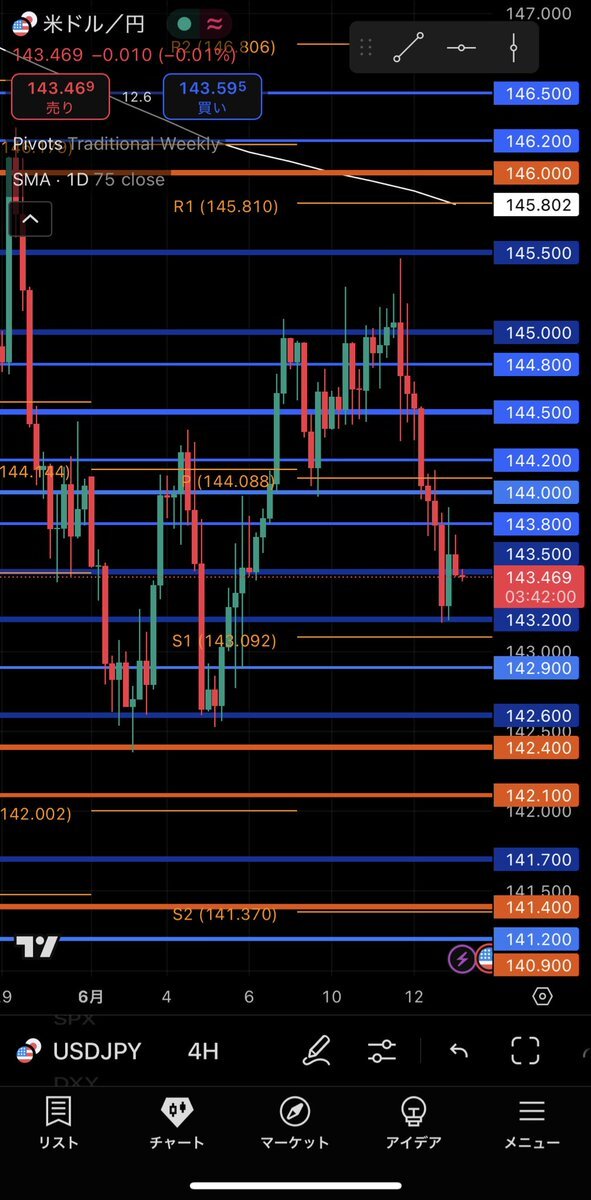 おはようございます!今日はドル円上がるのかな?下がるのかな?ポジション変わってないです! #usdjpy #ドル円 x.com/masaru_fx_cfd/…