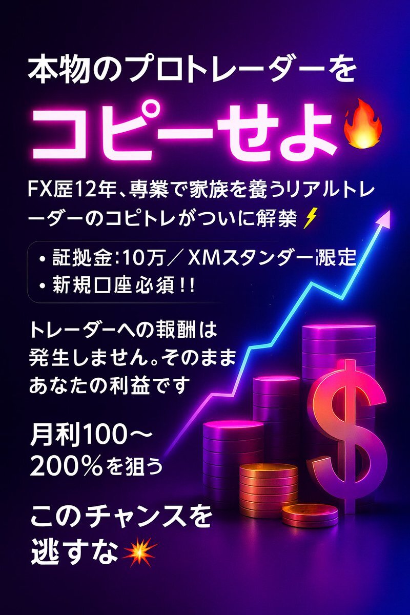 【プロに任せる安心コピトレ㊙️】 FX歴12年の専業トレーダーが運用するリアルトレードをそのままコピー📈 証拠金10万から始められる&XMスタンダード限定⚡ 「月利100〜200%を目指し、無理なく運用」 ここから:bit.ly/3UVLLhF #コピトレ #初心者歓迎 #副業チャレンジ #FX投資 pic.x.com/gQk0kUww3F