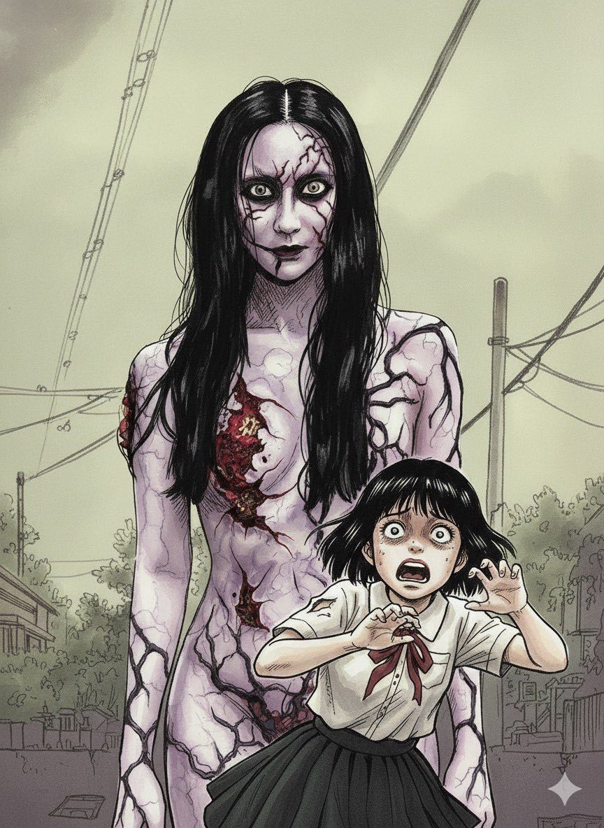 素敵なアイコン・壁紙・ヘッダーを生成したいのです。名作ウイカ様イラスト。これは楳図かずお大先生風ホラー。 禁じられた遊び・麗しの美雪ちゃんは、令和のホラーヒロインなのです🥰 #AIart #geminiatwork #ウイカ #ファーストサマーウイカ pic.x.com/LHB6UvW7p9