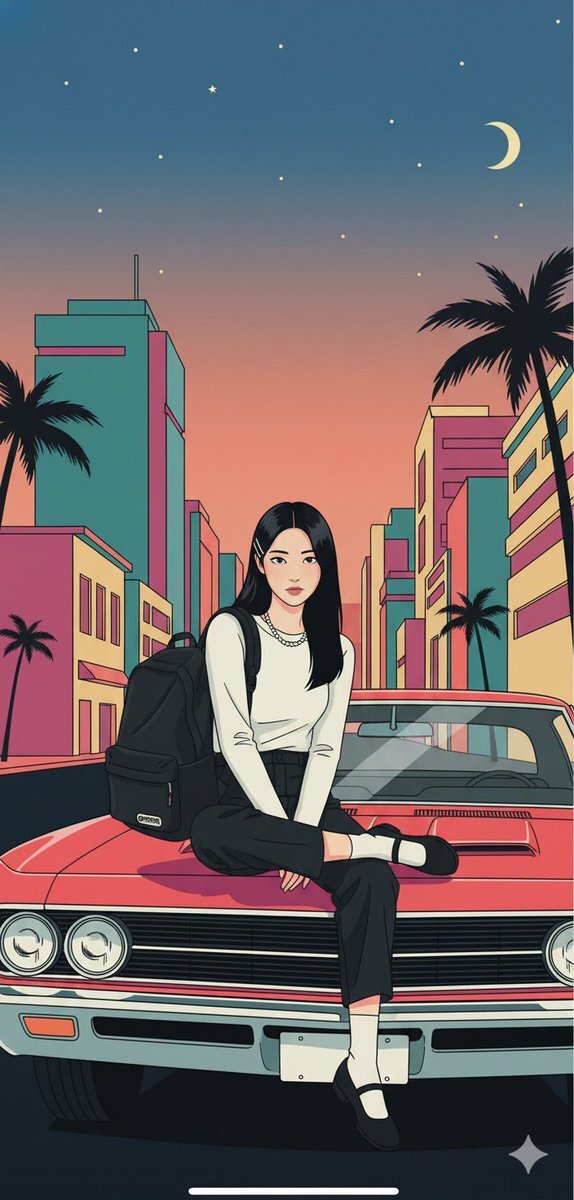 素敵なアイコン・壁紙・ヘッダーを生成したいのです。名作ウイカ様イラスト。これは我が街出身の巨匠・わたせせいぞう先生風シティポップ。 レトロでカラフルな街並みとシンプルカジュアルのウイカ様のバランスが良🤩 #AIart #geminiatwork #ウイカ #ファーストサマーウイカ pic.x.com/PABTQrNkoD