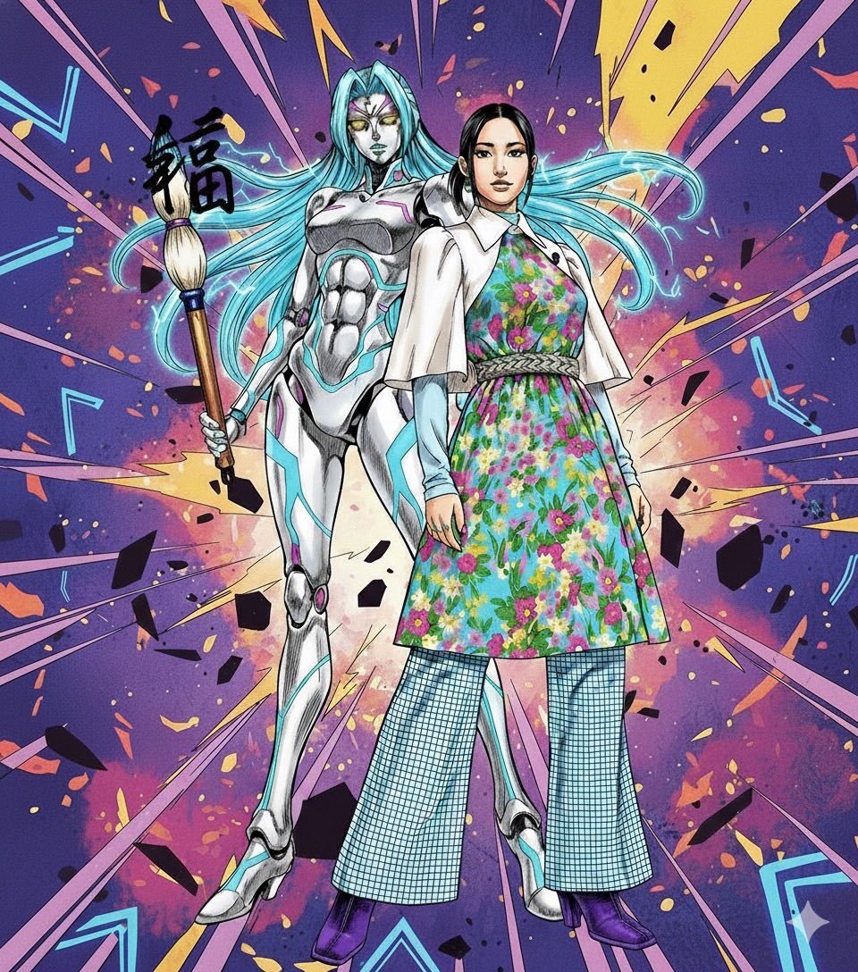 素敵なアイコン・壁紙のために、 昭和、平成、令和の色々な名作漫画などのテイストで、ウイカ様のAIイラストを作成しています。これはJOJO風。 スタンドの武器は筆ですね。スタンドの土手もやや高め🗻 #AIart #geminiatwork #ウイカ #ファーストサマーウイカ pic.x.com/TGe1M0EMcr