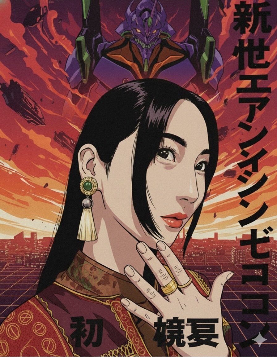 素敵なアイコン・壁紙のために、 昭和、平成、令和の色々な名作漫画などのテイストで、ウイカ様のAIイラストを作成しています。これはエヴァ。 この位置だと、使徒のようですね。指示してないけど、初と夏らしき字がw #AIart #geminiatwork #ウイカ #ファーストサマーウイカ pic.x.com/Ip0KYWAII6