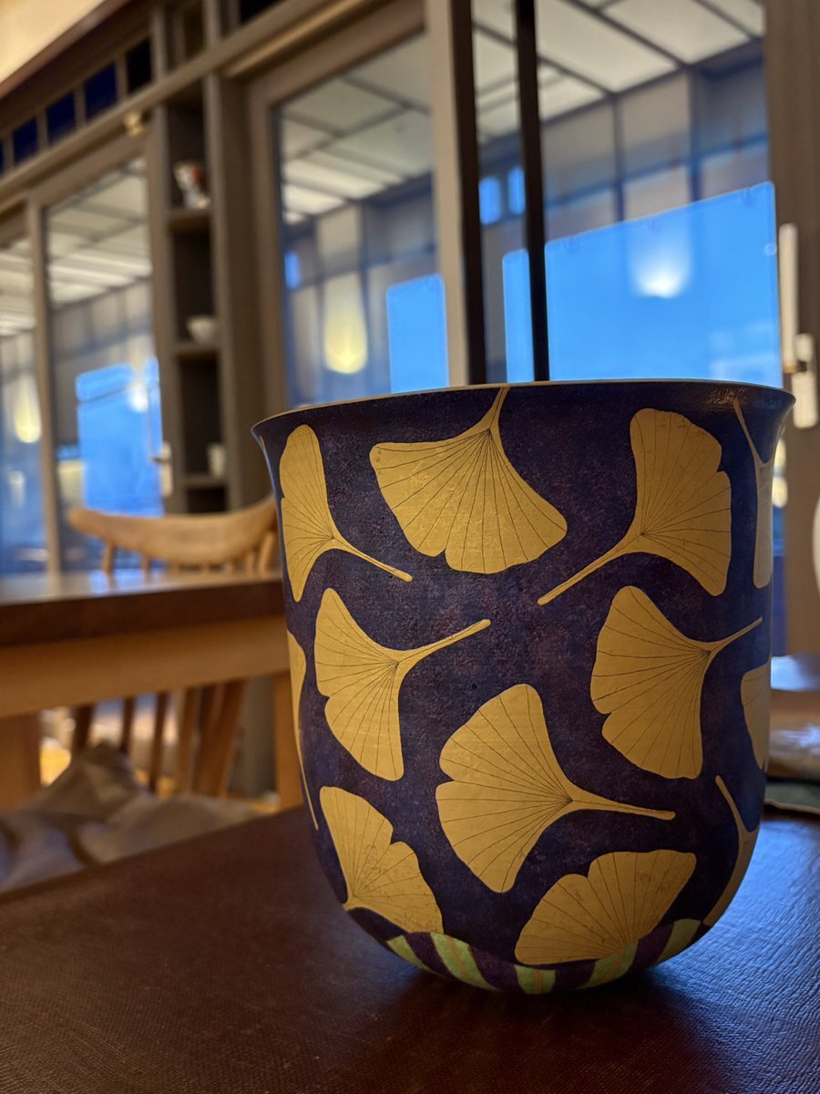 ☀秋のおでかけには #石川県九谷焼美術館 へどうぞ☀ 美術館前の #古九谷の杜親水公園 は紅葉がすすみ色鮮やかです🍁天気の良い日は美術館鑑賞と公園の散策もおすすめ✨ 休憩にはどうぞ #茶房古九谷 をご利用くださいませ☕ 店内の作品からも秋が感じられます🍂 #高山和夫 #銀杏 #kutaniware #Ginkgo pic.x.com/2mjQHds5EO