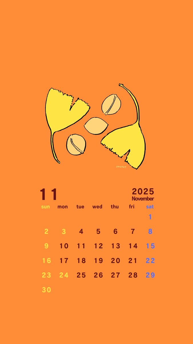 銀杏のイラストで11月のカレンダーを作りました。待ち受けなどによろしければご使用ください。 ※個人使用の範囲でお使いくださいませ。 #イラスト #illustration #銀杏 #ginkgo pic.x.com/UoPUt4epg0