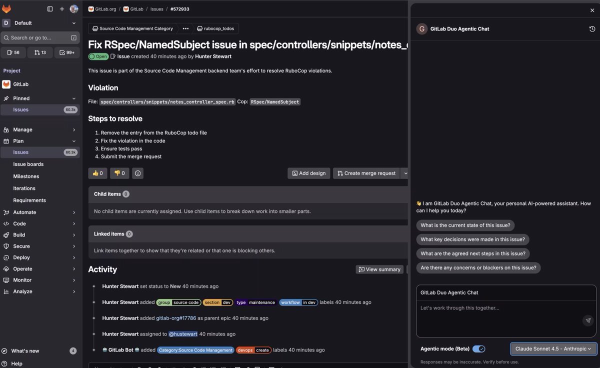 Claude Sonnet 4.5 is available in GitLab Duo Pro, Duo Enterprise, and Duo Agent Platform, giving teams access to Anthropic’s most advanced model for coding and agents. Learn more in our blog: about.gitlab.com/blog/greater-a…