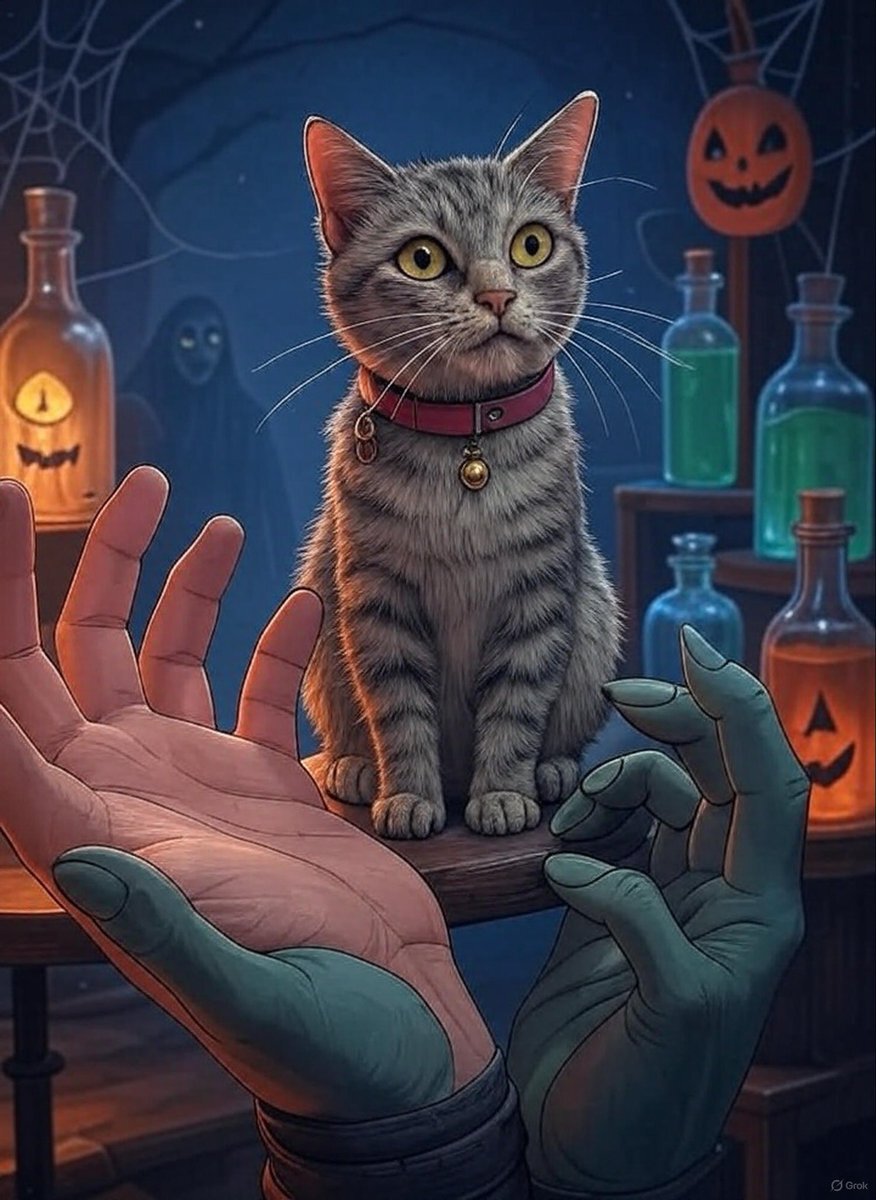 先日のハロウィンフィギュアを Grokでイラスト化 色がグレーなのはいいけれど、ちょっと優しい丸顔でベンガルと言うより、アメショになっちゃった!?😄 #猫好きさんと繋がりたい #BeautyPlus #Grok pic.x.com/Ye6BLnng1T
