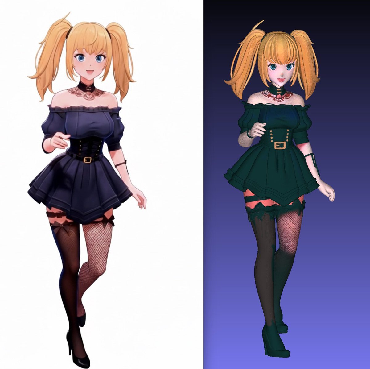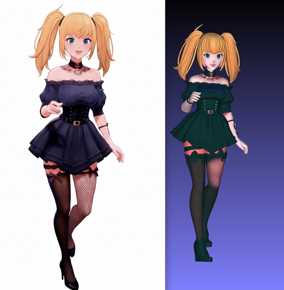 【今夜のAIフィギュア3Dプリント原型進捗】 最終マスターを確定しました! この画像のモデルが最終版になります。 最後にAniちゃんの背中のリボンをどうしようか悩みましたが、今回はそのままでフィギュア化出力します。ここは一枚絵変換の泣き所です。(^_^;) #AIフィギュア3Dプリント計画 #GrokAni pic.x.com/TK4JUbEEXN