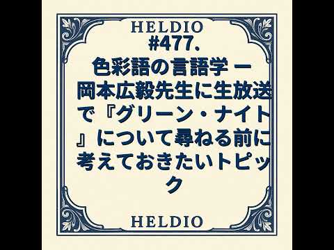 【▶YouTube で heldio 再放送】 「#477. 色彩語の言語学 ー 岡本広毅先生に生放送で『グリーン・ナイト』」 youtube.com/watch?v=RIC_pD… SGGK における「緑」や色彩について,岡本先生に伺いました🎤 #heldio再放送 #英語史 #hel活 #英語史をお茶の間に #SGGK #色彩語 @gouernourofgyng @khelf_keio