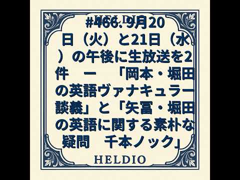 【▶YouTube で heldio 再放送】 「#466. 9月20日(火)と21日(水)の午後に生放送を2件」 youtube.com/watch?v=drX7_-… #heldio再放送 #英語史 #hel活 #英語史をお茶の間に @khelf_keio @helvillian
