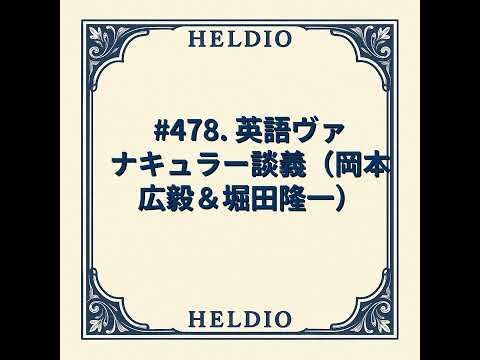 【▶YouTube で heldio 再放送】 「#478. 英語ヴァナキュラー談義(岡本広毅&堀田隆一)」 youtube.com/watch?v=jv1jLD… 前日に引き続き,再び岡本先生(立命館大学)と対談しています! 和訳しにくい vernacular (俗語?母語?現地語?)について語ります✨ #heldio再放送 #英語史 #hel活