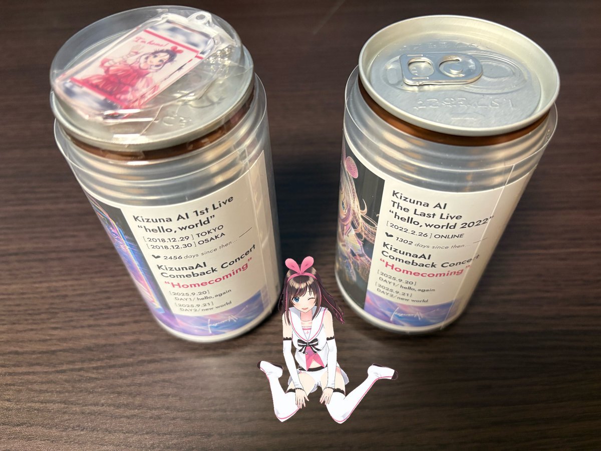 #KizunaAI #TAGLIVELABEL #HoloModels 自販機ガチャはあたりとはずれ、両方入手できました ラベルはスリープ前最初のライブと最後のライブ…これだけでスリープ前のアーティスト活動を感じられる x.com/meka_usagi/sta…