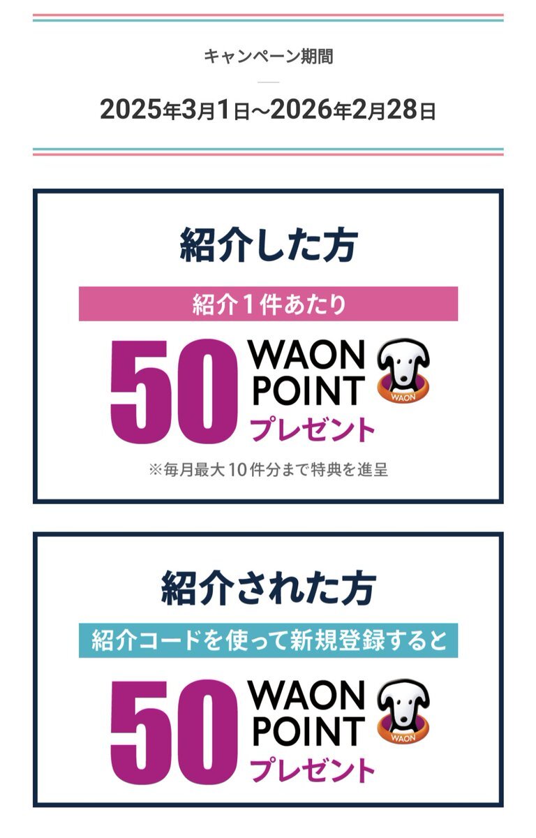 iAEONアプリ登録時に この紹介コードを入力すると WAON POINTプレゼント🎁 紹介コード:A05-3Q7JE75D9D8 iaeonapps.page.link/2024_friend_sh… #iAEONお友だち紹介 #イオン #WAON
