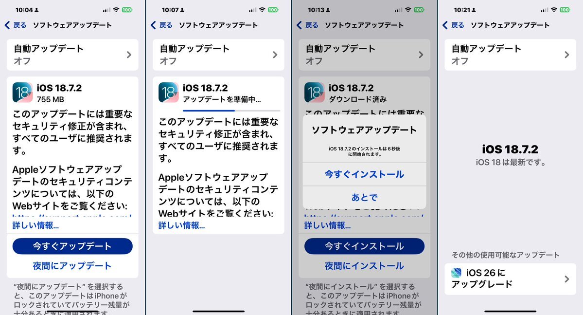 【iOS18.7.2】セキュリティーアップデート iOS26を望まないiOS18ユーザーへのセキュリティアップデートが配信です。 内容的に適用した方が良いので、気になった方は公式で確認下さい。 #ios #セキュリティ #パッチ #アップデート #iOS1872 #iOS18 pic.x.com/Q9Wu8VFWPc