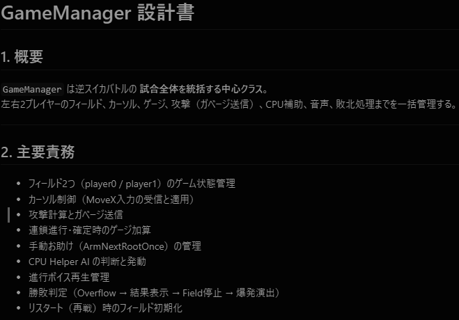 GPTには長期記憶がないです。なので、設計書を描いておさらいをしています。 この設計書を喰わせないと、バグが出たとき、あり得ない仮説を立ててきます! GPTとゲームを作る方法が分かった! まだまだ、カニの戦いは続く! #UNITY #ゲーム製作 #落ち物パズル #IndieGameDev #インディゲーム pic.x.com/8wNQo6IDDE