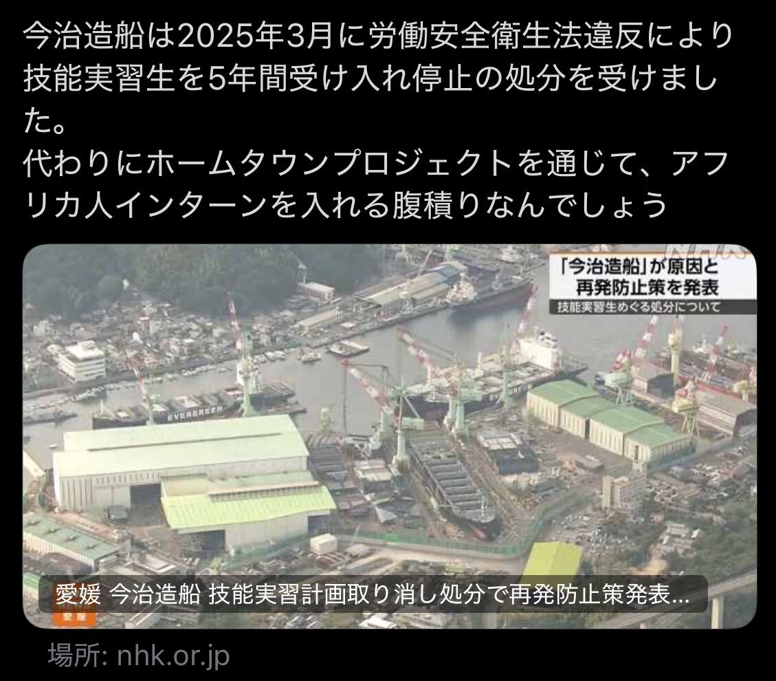 返信先:@AkihisaShiozaki他2人ホームタウンで炎上してる企業にわざわざ行って日本人を煽ってんの? #jicaアフリカ・ホームタウン計画は移民政策 pic.x.com/gKPwkxqyxZ