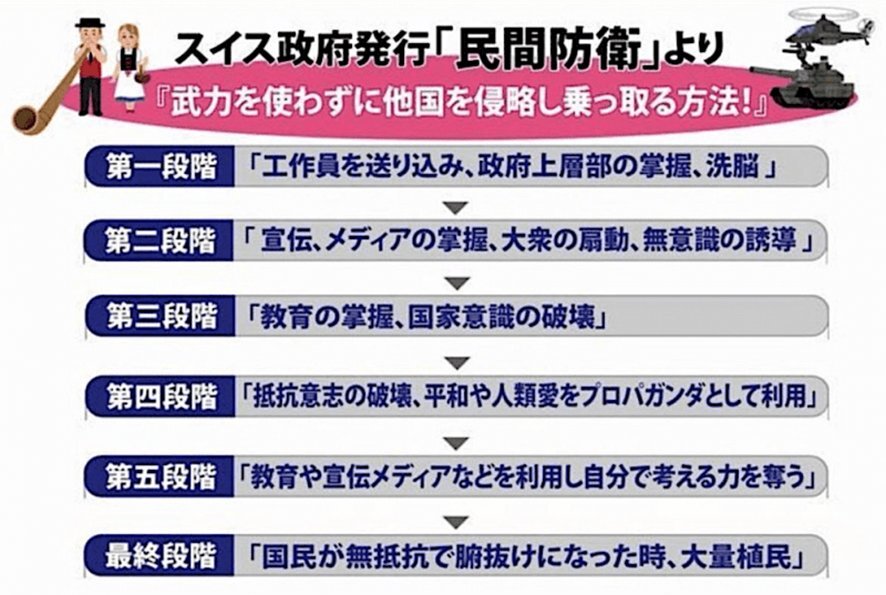 神谷代表 「スイスの民間防衛も参考にしている」 日本人の皆さんが知るべきです☝️ 【武力を使わずに他国を侵略し 乗っ取る方法】 #参政党は日本の希望 x.com/jinkamiya/stat…