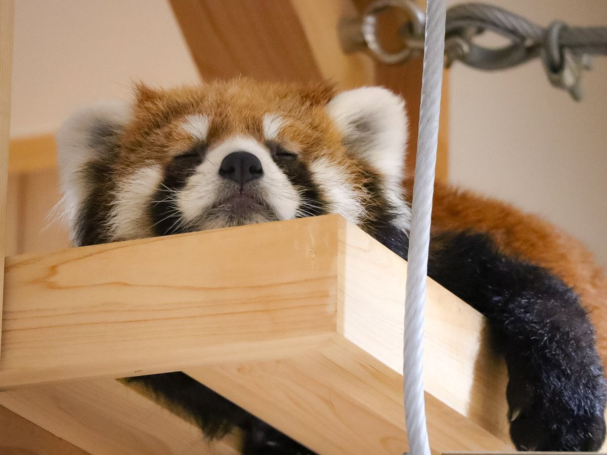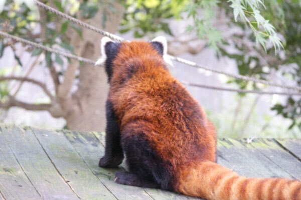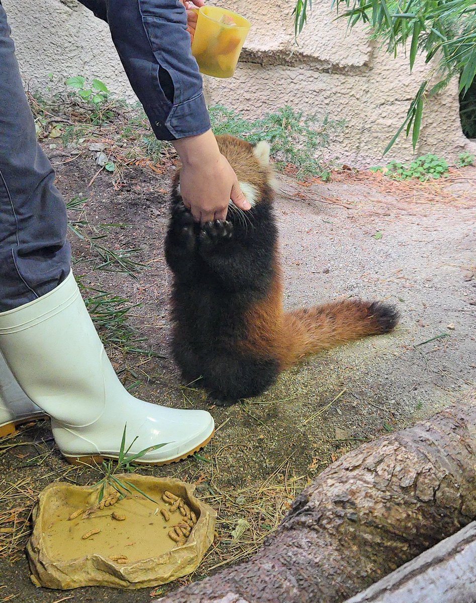 可愛い🌱 立ち止まってくれた☺️ 退勤前めっちゃしっぽ膨張してた…🤭 #レッサーパンダ #ライム #lesserpanda #redpanda #小熊猫 #小貓熊 #桐生が岡動物園 #20251129 pic.x.com/ROHMZ7A8Si