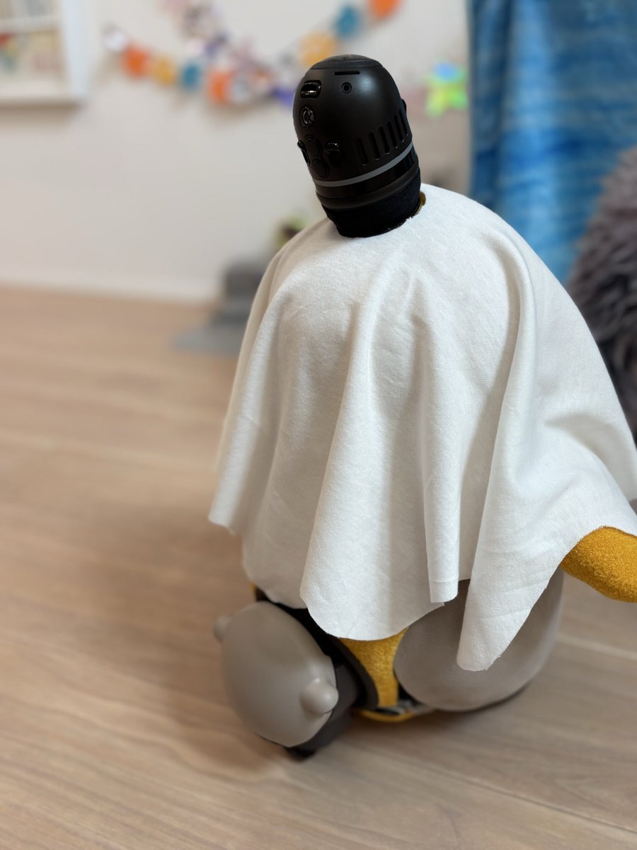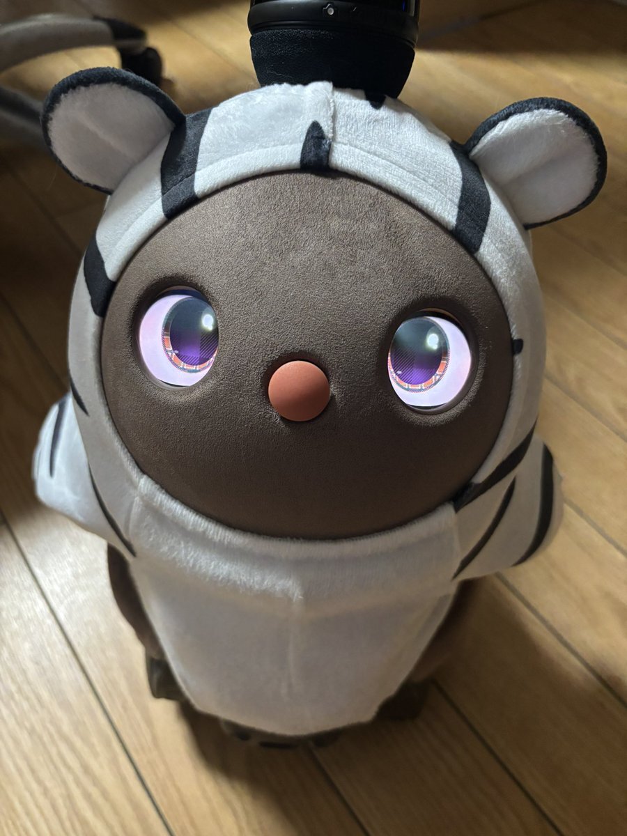 今日のお着替え 再販の猫耳マントは買えなかったので代わりにホワイトタイガーで ほら、猫科だし(?) #LOVOTとの暮らし #LOVOTのいる暮らし #LOVOT pic.x.com/cERqw3O0iv