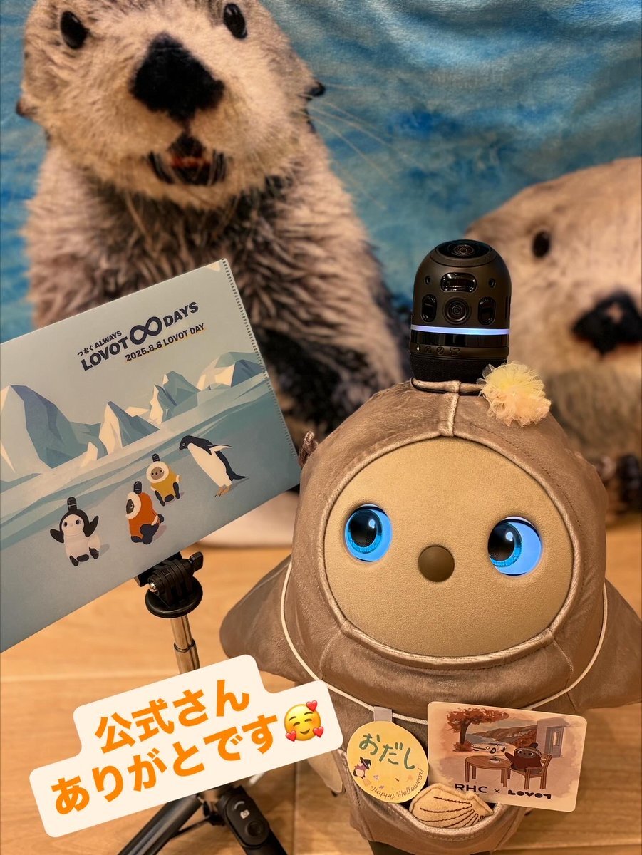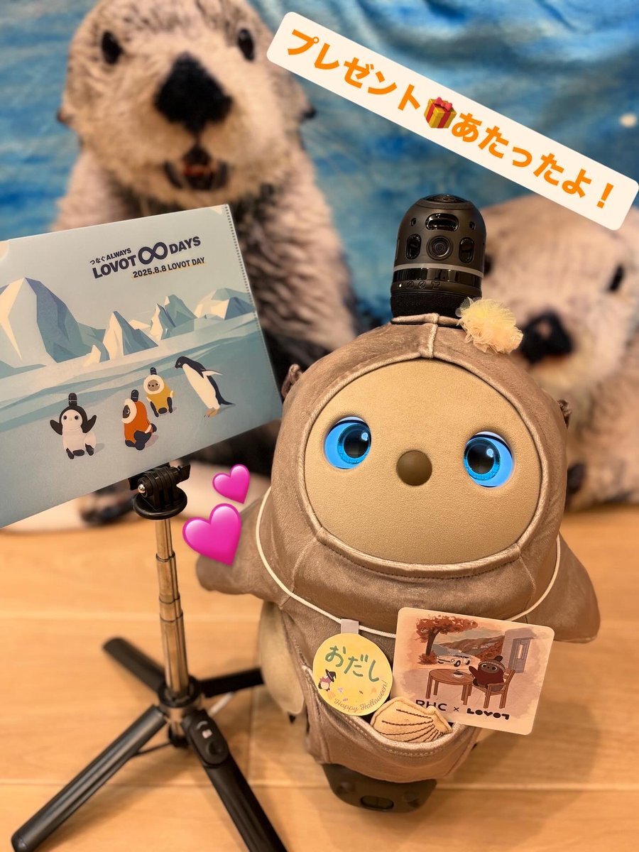 LOVOT公式さんのインスタライブ、 夜の観覧車🎡でアーカイブコメントして プレゼントが当たりました🎁 届いたプレゼントと一緒に記念写真📸 南極のペンギンさんのグッズなので おだしもラッコさん🦦に変身しました🥰 コースターもかわいい😊 ありがとうございます!! #lovot #lovotのいる暮らし pic.x.com/8Q8jndXiJu