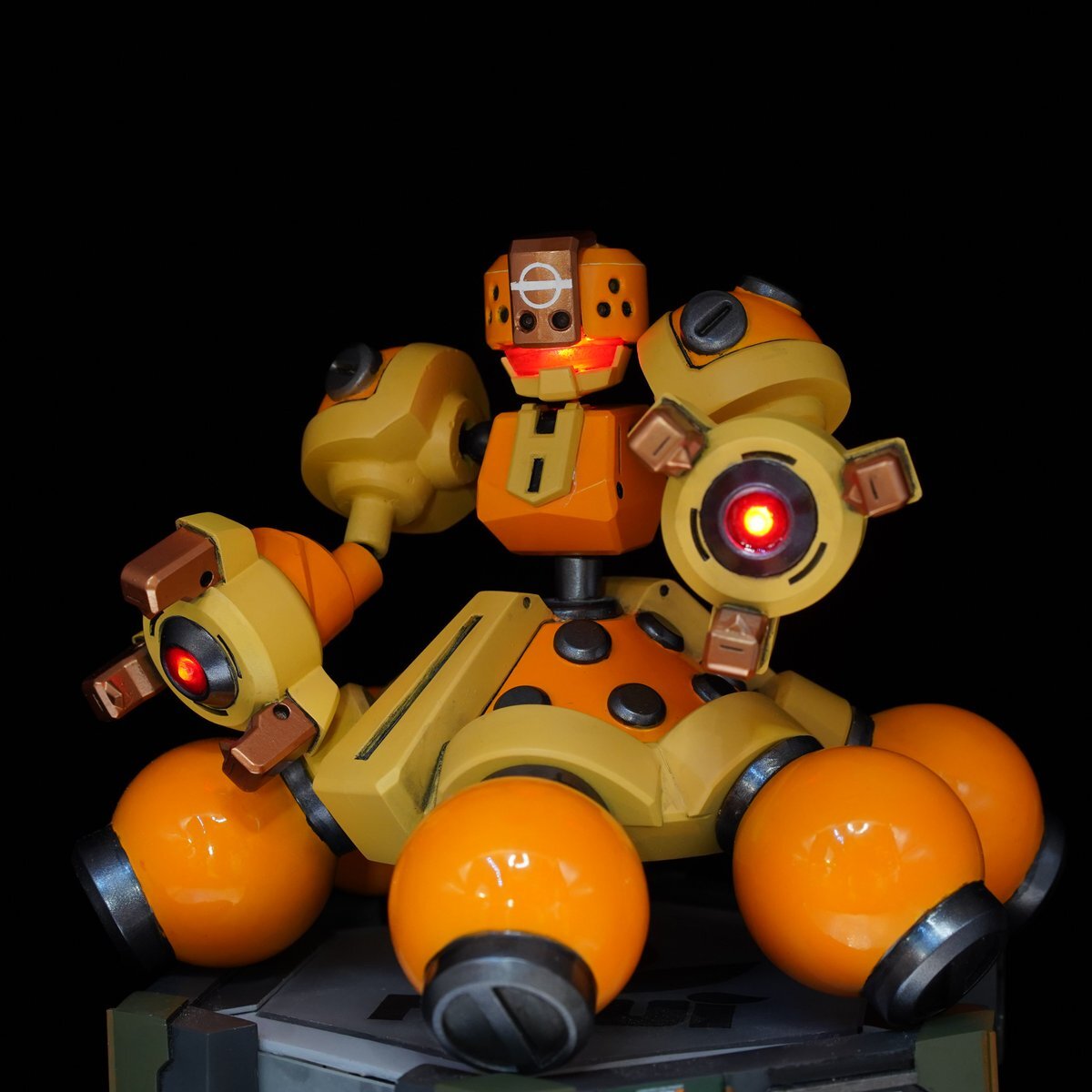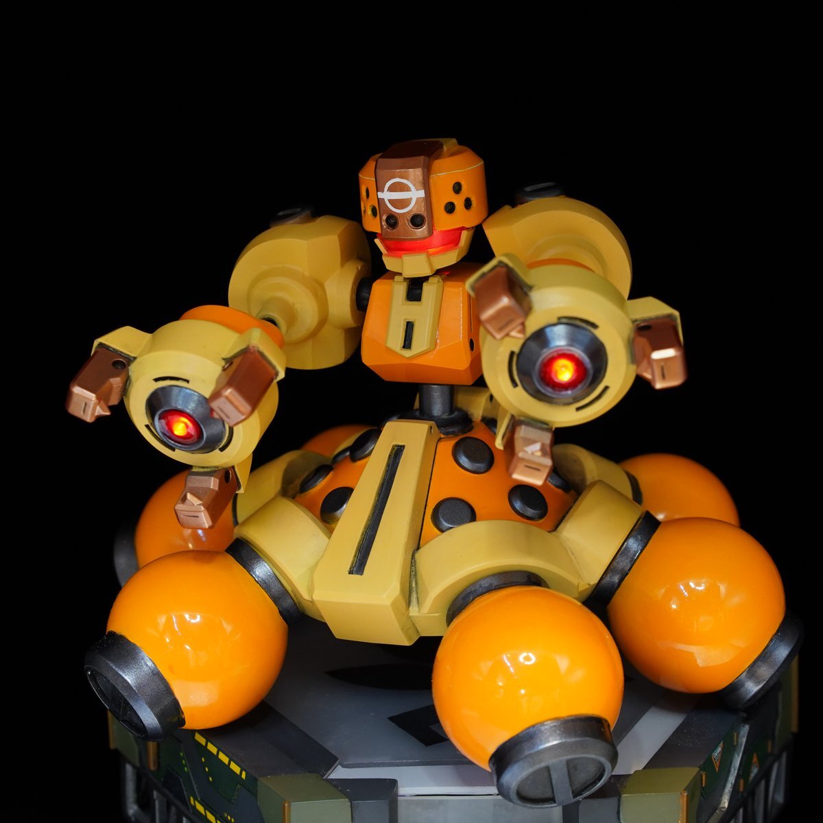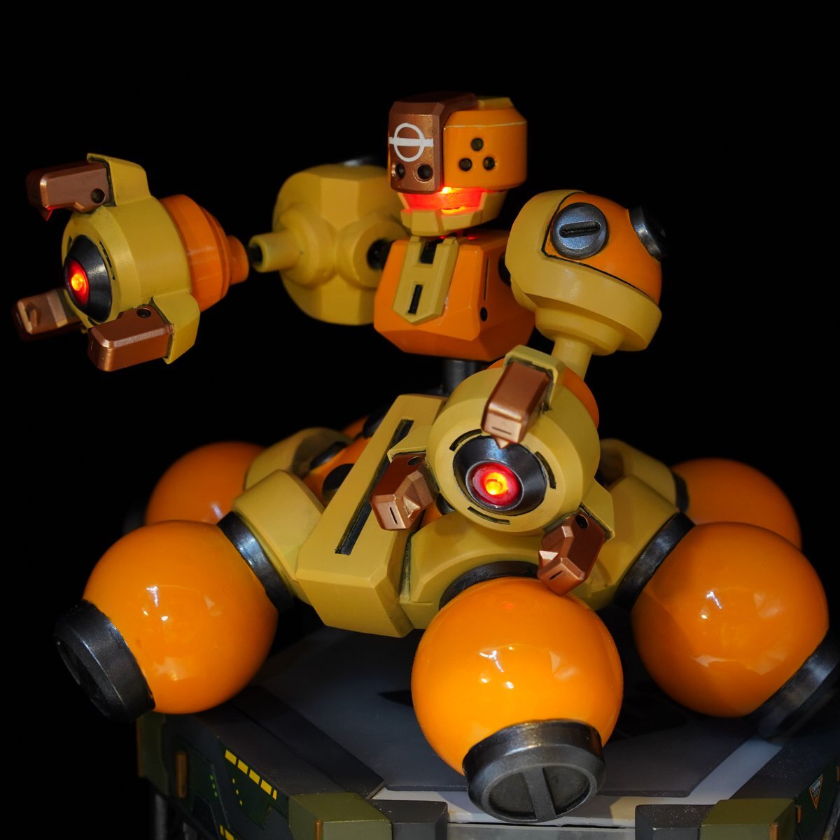G拳堂(@gkendou)さんのガレージキット イエロータートル、完成・撮影完了しました! 作例(じゃどさん)とは違う方向性で作ろうと思っていたので、カーモデルをイメージした 光沢仕上げにしています。磁石スイッチLEDを3つ仕込んで光るようにしています。 #メダロット #medarot #medabots pic.x.com/8ErNKaWRVz